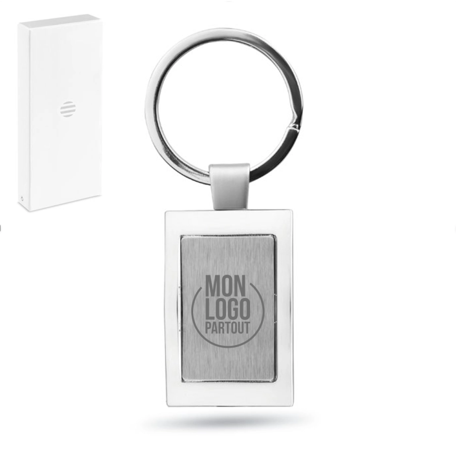 Objet personnalisé incontournable, le Porte-clés rectangulaire Harrobs en alliage de zinc chromé est un support exceptionnel pour une communication par l'objet réussie.