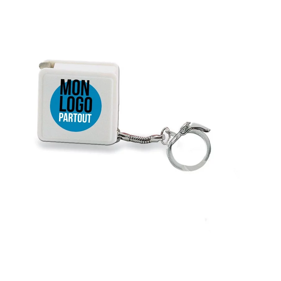 Ce porte-clés personnalisable inclus un mètre à ruban de forme carré et d’une longueur de 1 mètre. Léger et facile d’utilisation, ce porte-clés personnalisé est un objet publicitaire passe partout qui vous accompagnera partout sans vous encombrer. Pratique, ce porte-clés personnalisé vous sortira d’affaire lors de mesures imprévues.