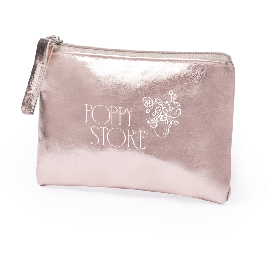 Personnalisez notre porte-monnaie ou trousse au design super cool et flashy avec une finition en similicuir brillant. Idéal pour des cadeaux publicitaires, cette pochette originale répondra aux attentes de vos clients.