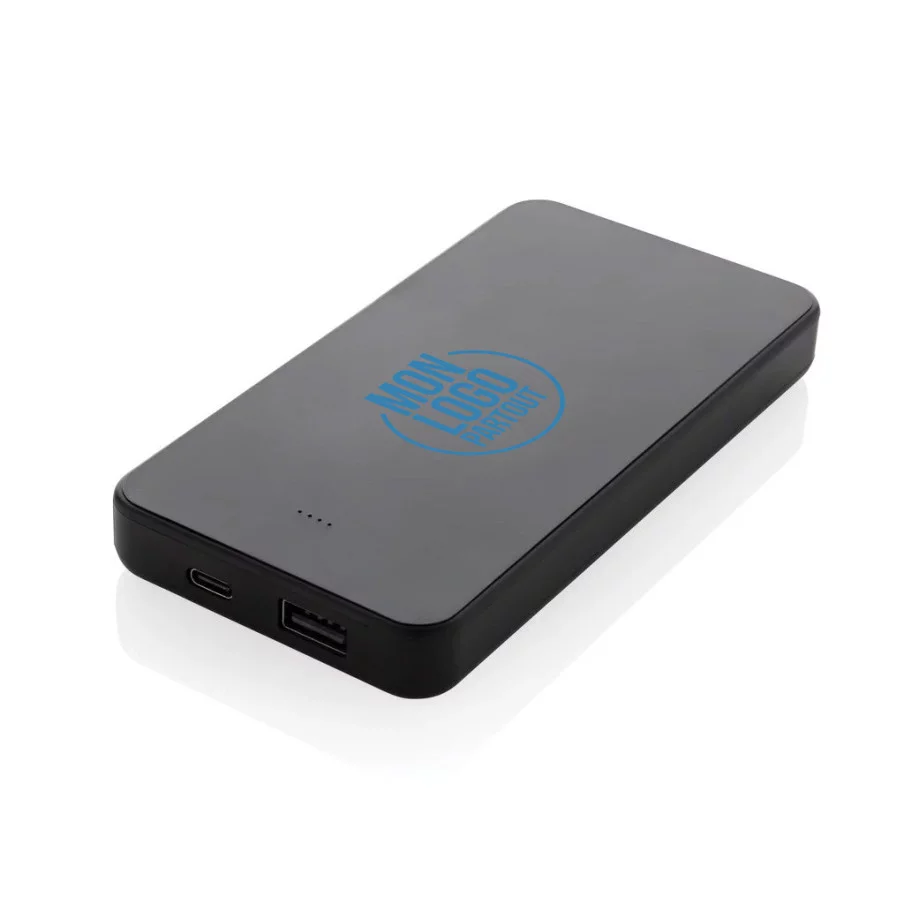 Le boîtier de cette powerbank est conçu en plastique ABS recyclé certifié RCS, pour un contenu recyclé total de 21%. Elle intègre une batterie lithium-polymère classe A, reconnue pour sa longévité. Cette powerbank est sans PVC, livrée avec un câble USB-C en TPE recyclé certifié RCS, dans un emballage kraft FSC® mix. Un cadeau d’affaires fonctionnel et responsable, idéal pour transmettre vos valeurs tout en offrant une solution utile à vos clients ou collaborateurs.