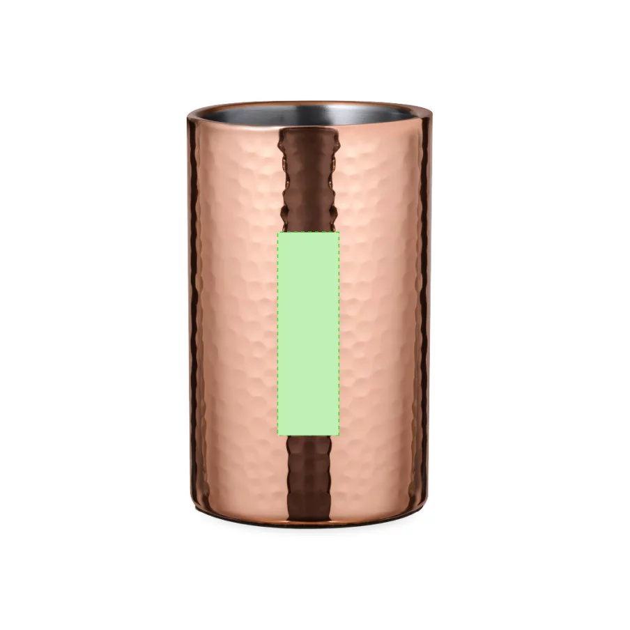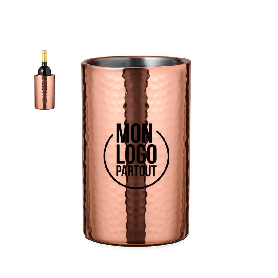 Ce refroidisseur en acier inoxydable est doté d'une capacité de 1 litre et d'un revêtement galvanisé en cuivre. Son design original et son fini brillant en font un accessoire parfait pour servir élégamment des boissons froides. En plus, il est présenté dans une boîte individuelle exclusive au design noir pour offrir un cadeau personnalisé unique.Refroidisseur publicitaire en acier inoxydable