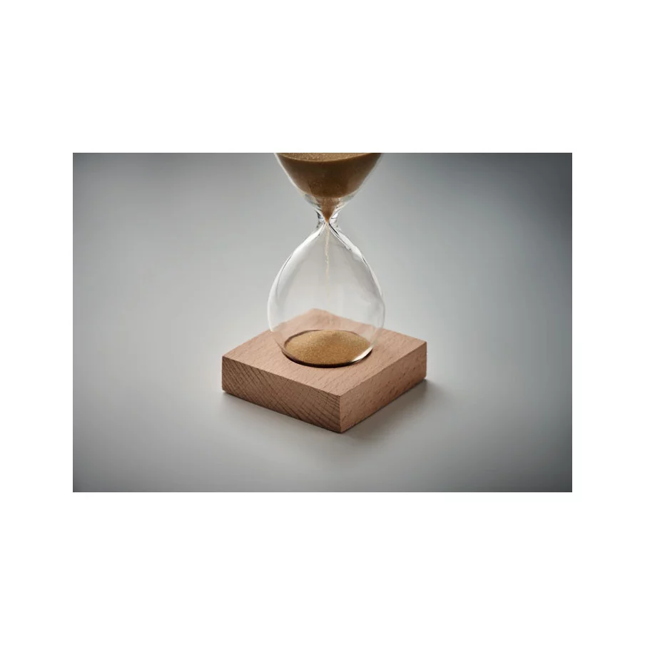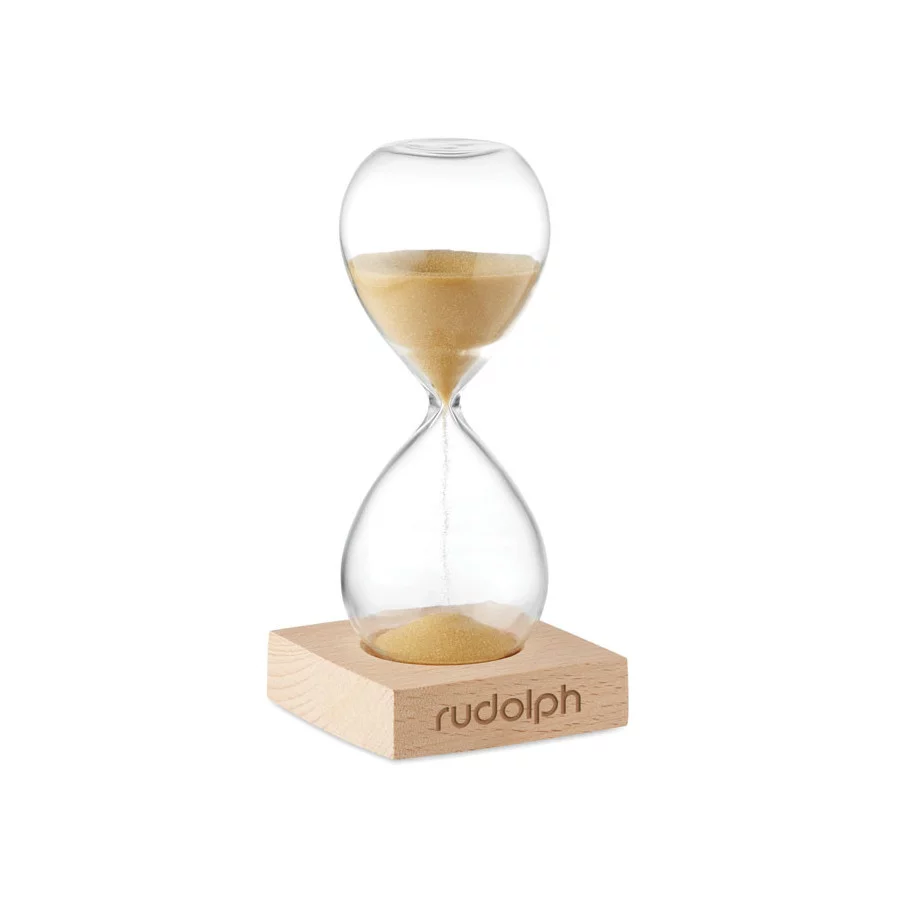 La boîte à objets vous présente un magnifique sablier en verre livré avec un support en bois de hêtre personnalisable. Durée 5 minutes