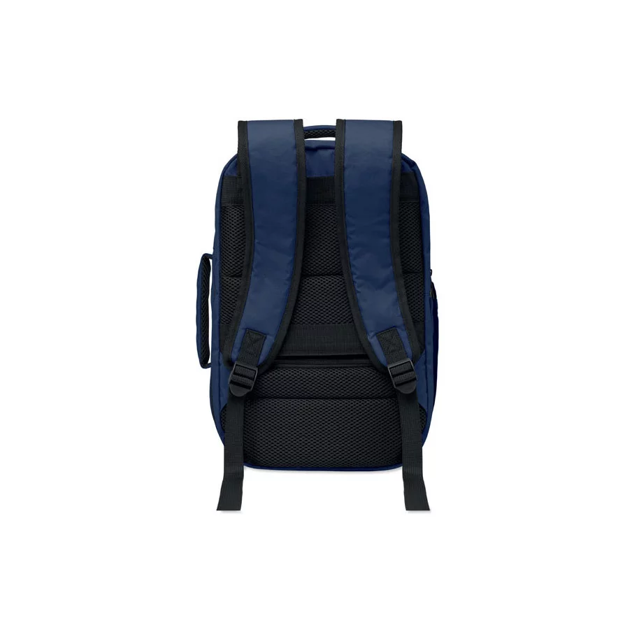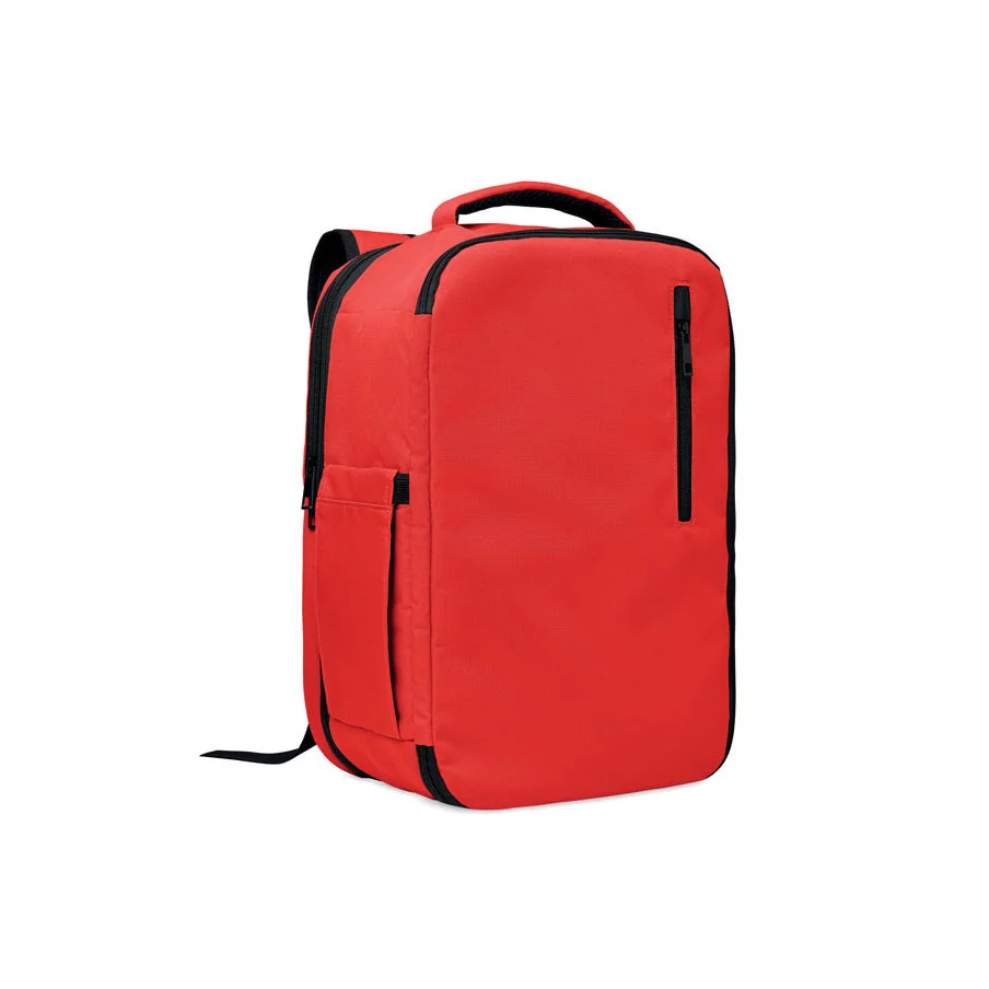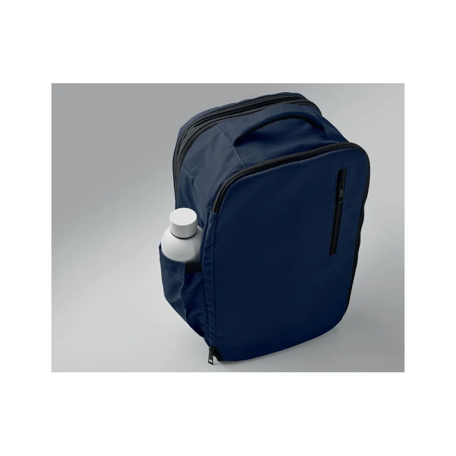 Le sac à dos Flysafe est conçu en RPET 600D et offre un format extensible, pratique pour adapter le volume selon le contenu. Le compartiment principal comprend deux sections ouvertes et une division en filet, ce qui facilite l’organisation des vêtements, documents ou accessoires. La pochette matelassée permet de transporter un ordinateur portable jusqu’à 15 pouces en toute sécurité. Le passant pour trolley permet de fixer le sac sur une valise pour les déplacements.