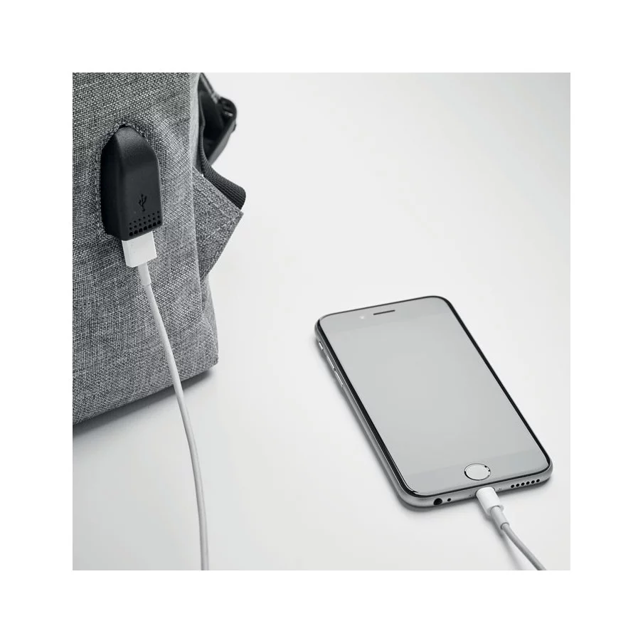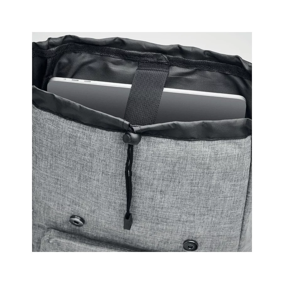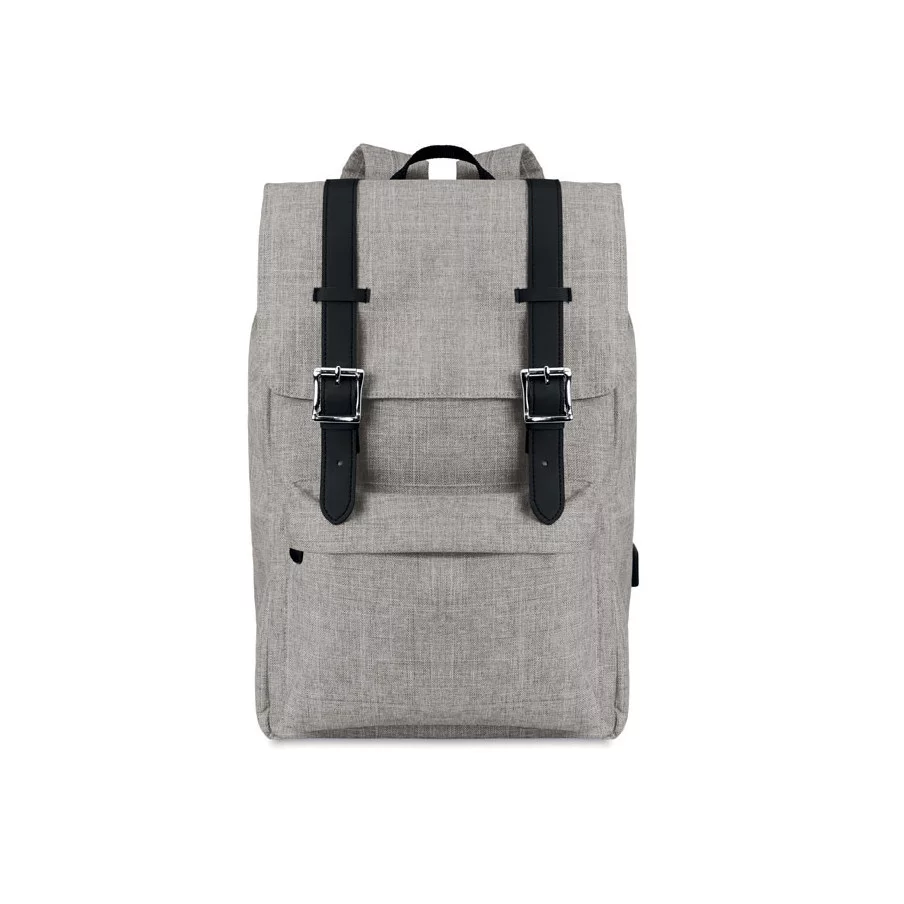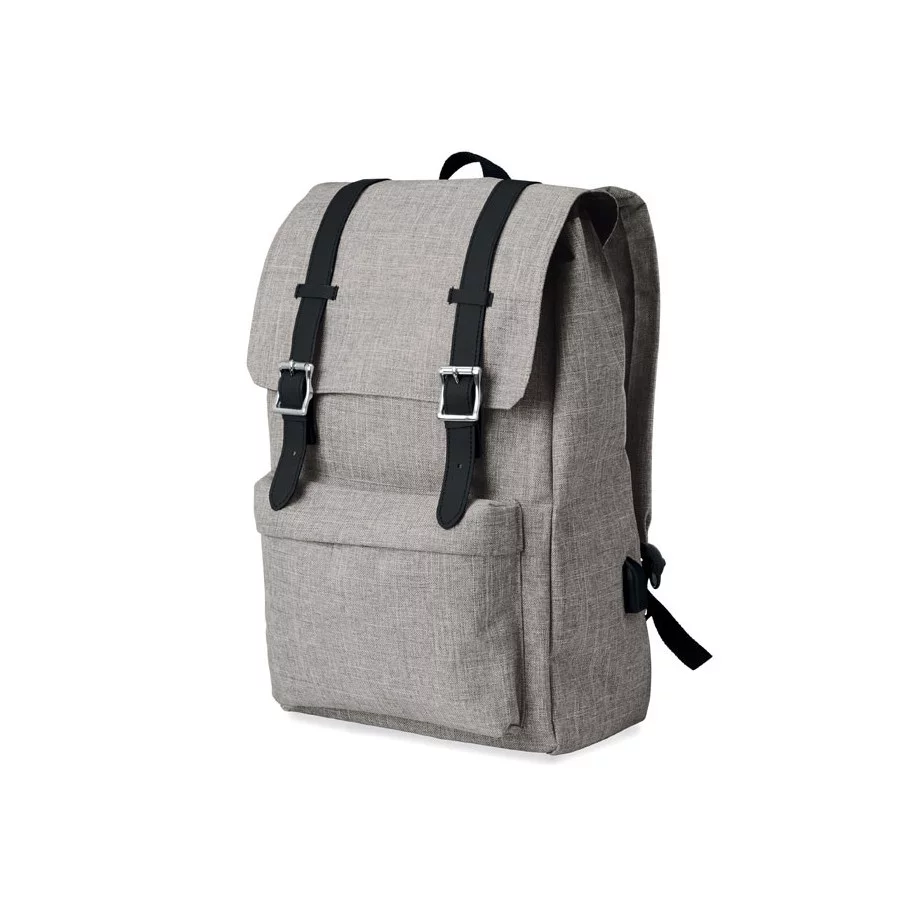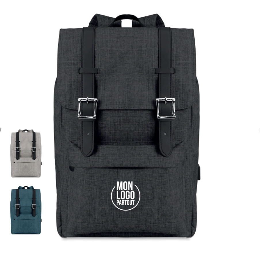 Le sac à dos personnalisé Riga détonne avec son look rétro et ses atouts modernes. Il permet d'accueillir un ordinateur de 15 pouces maximum et dispose d'un connecteur latéral pour brancher son téléphone.