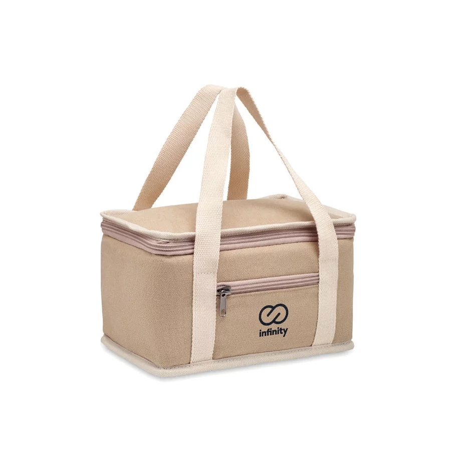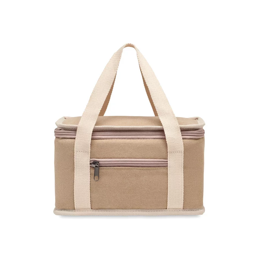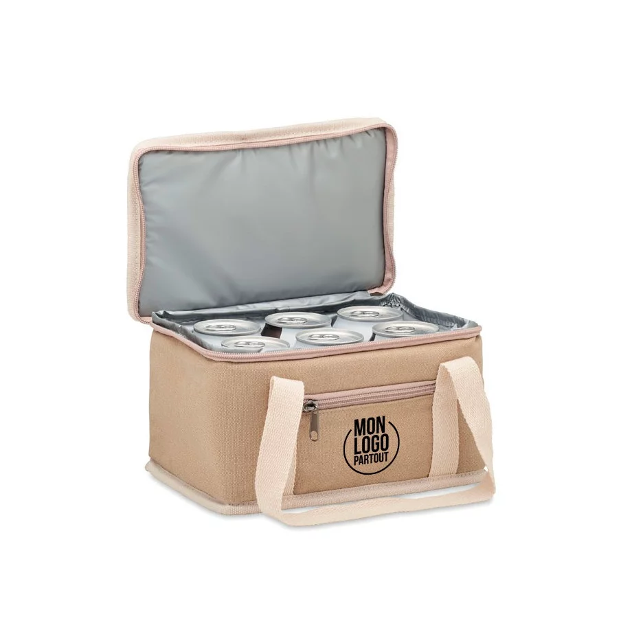 Le sac isotherme personnalisé Kecil est fabriqué en toile lavée et possède une sangle en coton. Son isolation est de 15C Peva avec 6 mm de mousse PE.