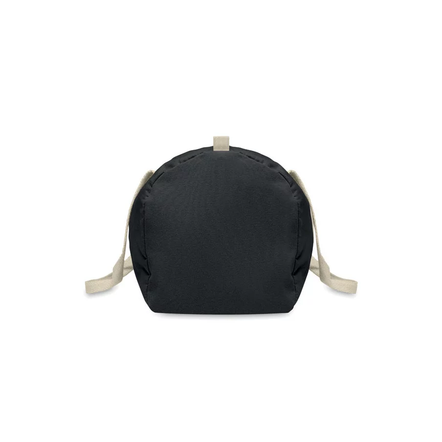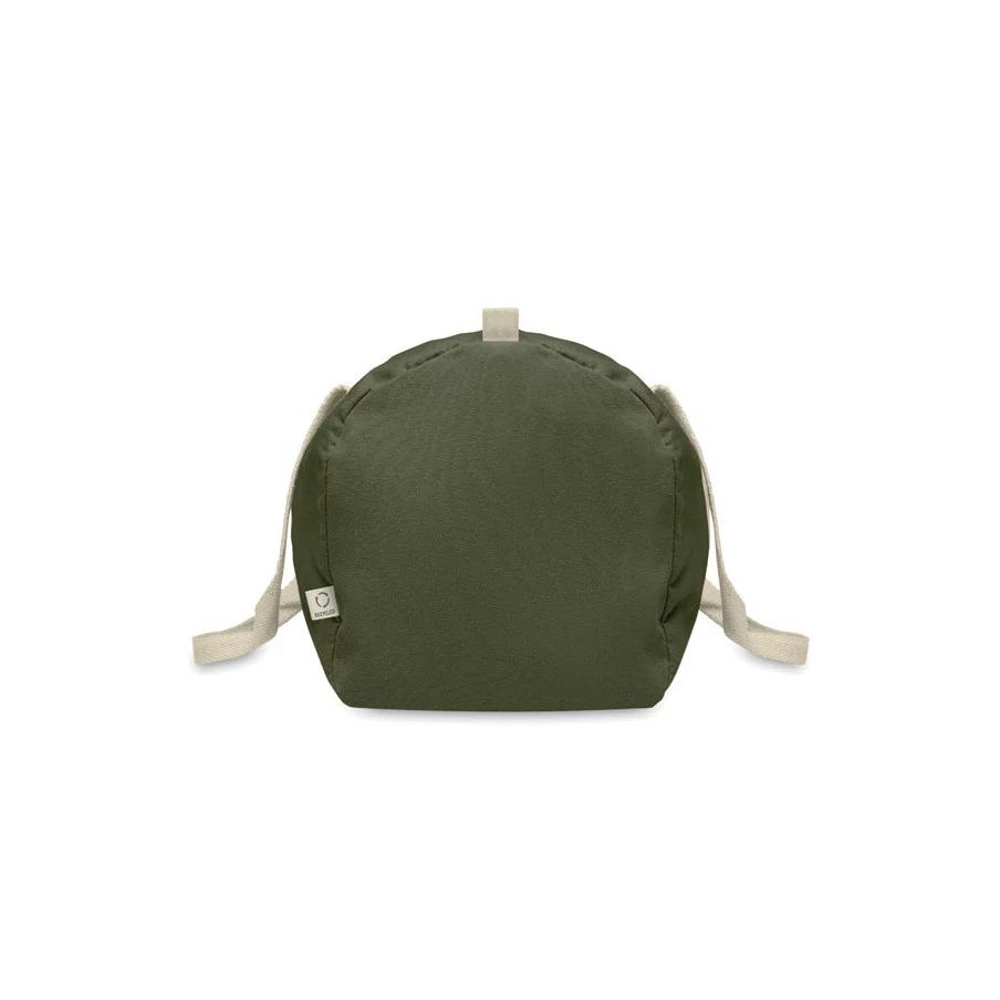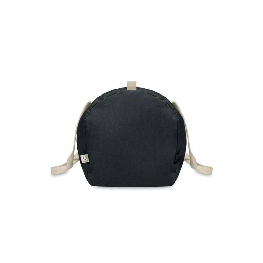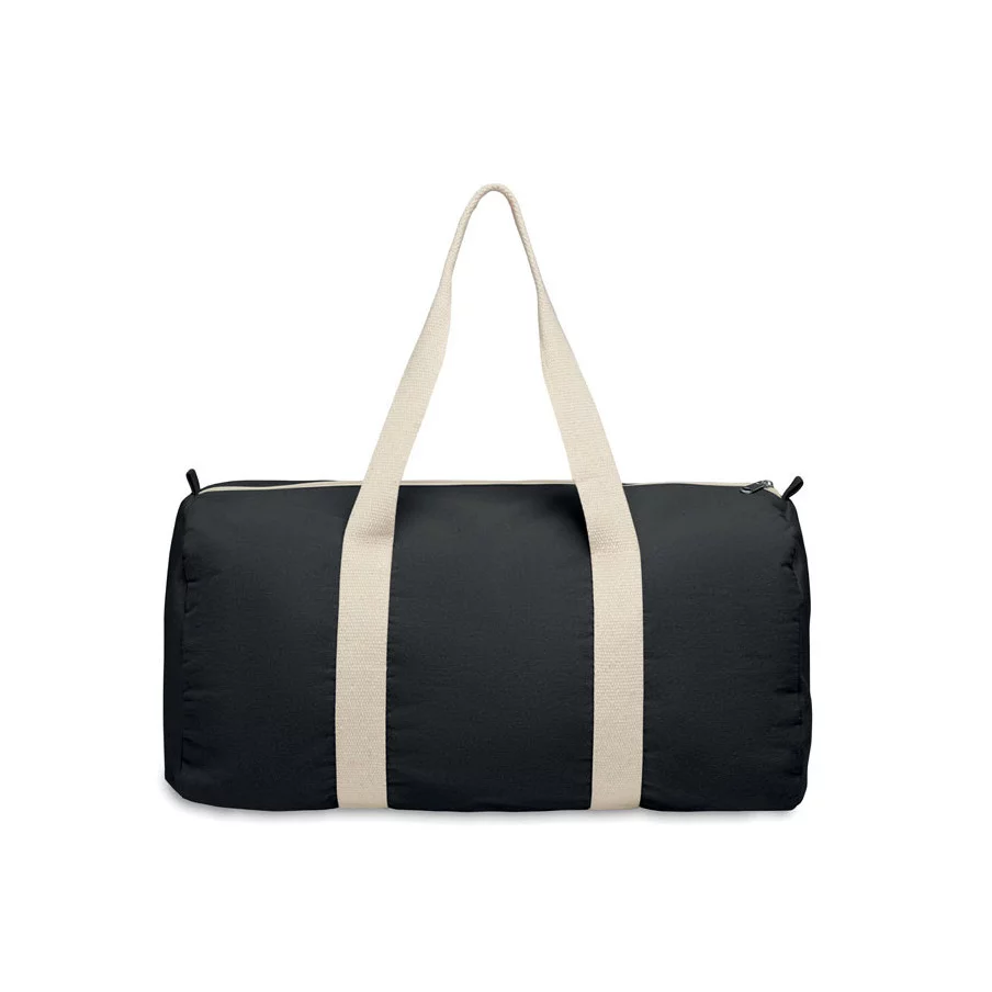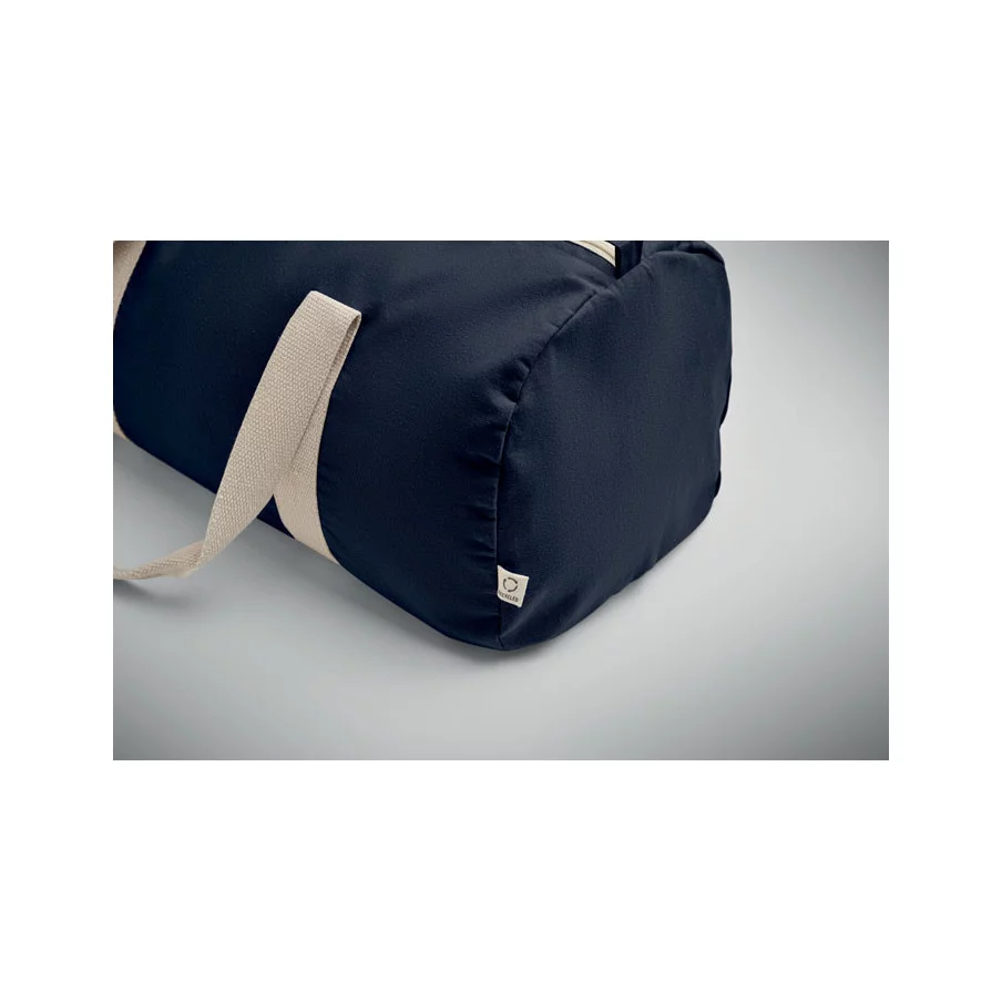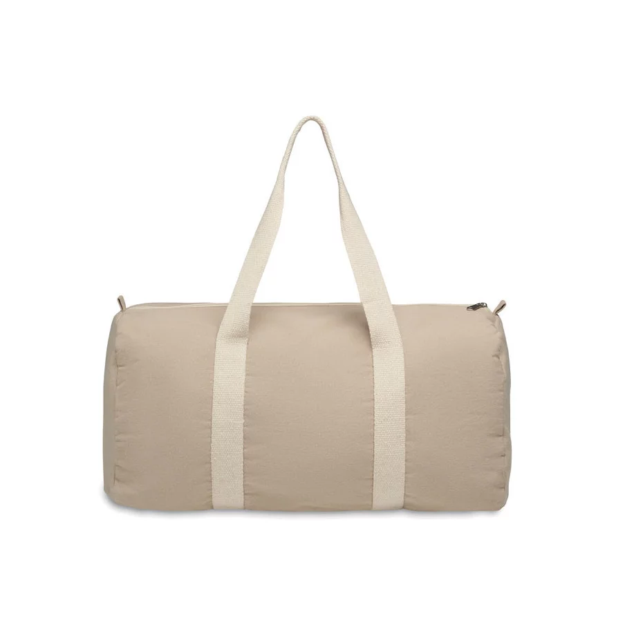 Ce sac polochon est fabriqué en coton recyclé (80 %) et polyester recyclé (20 %). Il est idéal pour le sport ou les voyages, avec compartiment latéral et poche intérieure zippés.