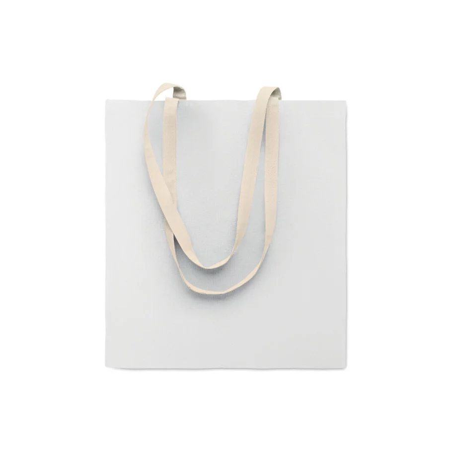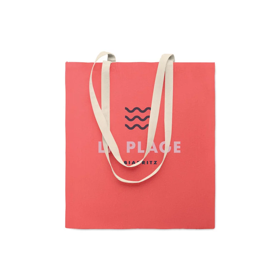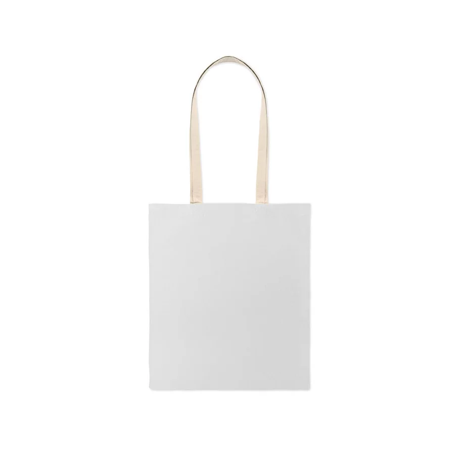 Ce sac shopping est fabriqué en coton 140 g/m² et dispose de longues poignées pour un port confortable. Il est pensé pour transporter facilement les achats du quotidien.