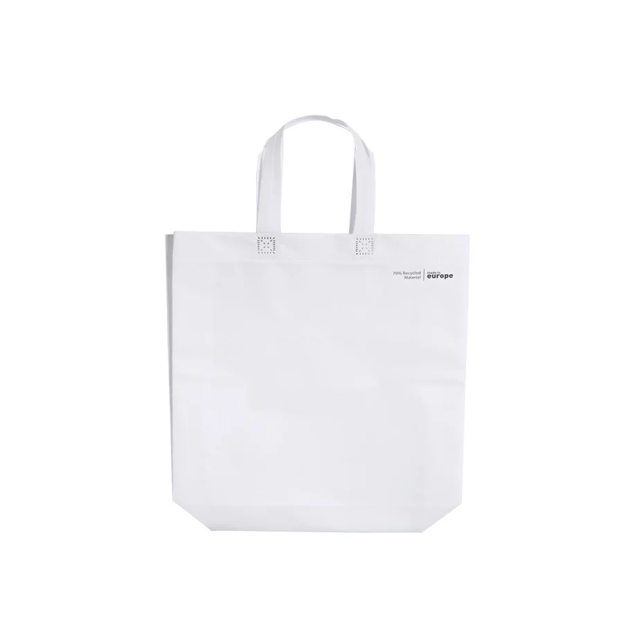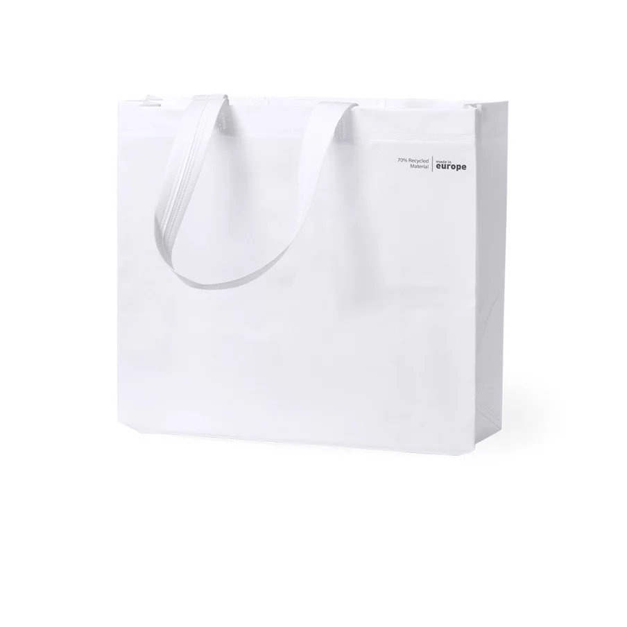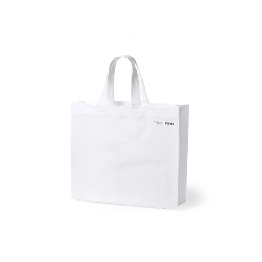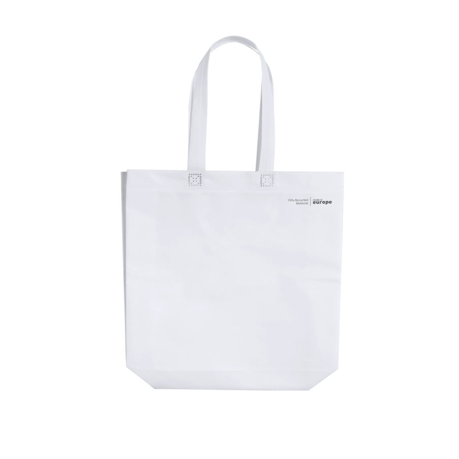 Personnalisez à vos couleurs notre sublime sac de courses publicitaire en stratifié recyclé à 70% non tissé de 120g/m2. De fabrication européenne, il dispose d'une finition thermoscellée avec soufflet et de longues poignées.