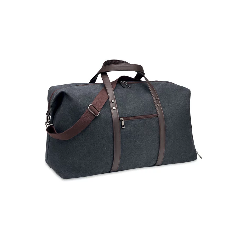 Véritable cadeau d'affaire, ce sac de voyage est qualitatif par sa conception offre une toile lavée de haute qualité et les détails en simili cuir donnent à ce sac personnalisable un aspect luxueux et haut de gamme. Parfait pour de courtes vacances ou un week-end en ville, ce sac de voyage original dispose d'un compartiment spécial pour ranger une paire de chaussures supplémentaire. Portez le sac par les poignées ou utilisez les sangles réglables et détachables incluses pour porter le sac sur votre épaule.