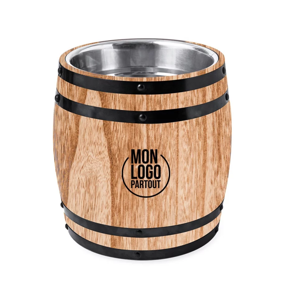 Ce seau en acier original avec revêtement extérieur en bois est le choix parfait pour vos boissons froides personnalisées. Sa forme de baril rappelle les célèbres fûts de bière, et sa double paroi en acier inoxydable vous permet de garder vos boissons glacées à la température idéale. Avec une capacité de 3L, vous pourrez profiter de vos boissons préférées en tout temps. Ce seau est présenté individuellement dans une boîte en kraft, ajoutant une touche écologique à son design moderne. Idéal pour les événements publicitaires ou tout simplement pour un usage personnel, ce seau en acier est un choix pratique et élégant.