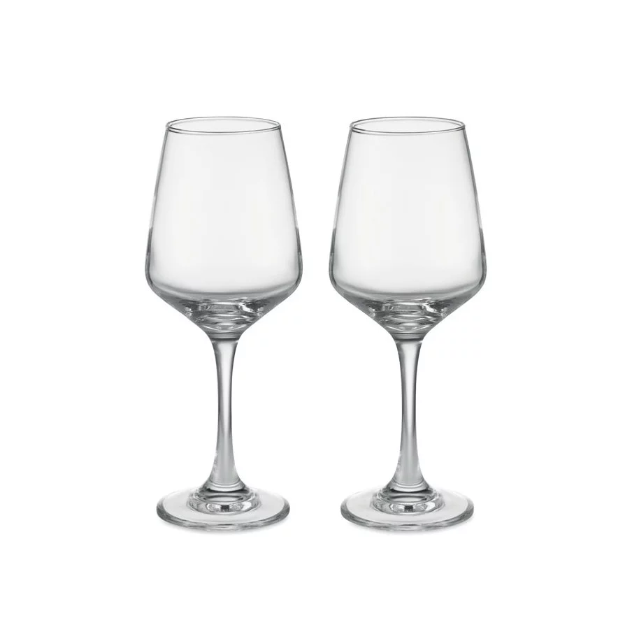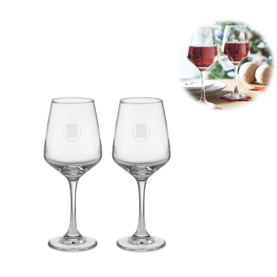 Personnalisez à vos couleurs notre set composé de 2 verres à vin en verre. D'une capacité de 400 ml, ces deux pièces d'une hauteur confortable seront un excellent cadeau promotionnel pour un amateur de vin.