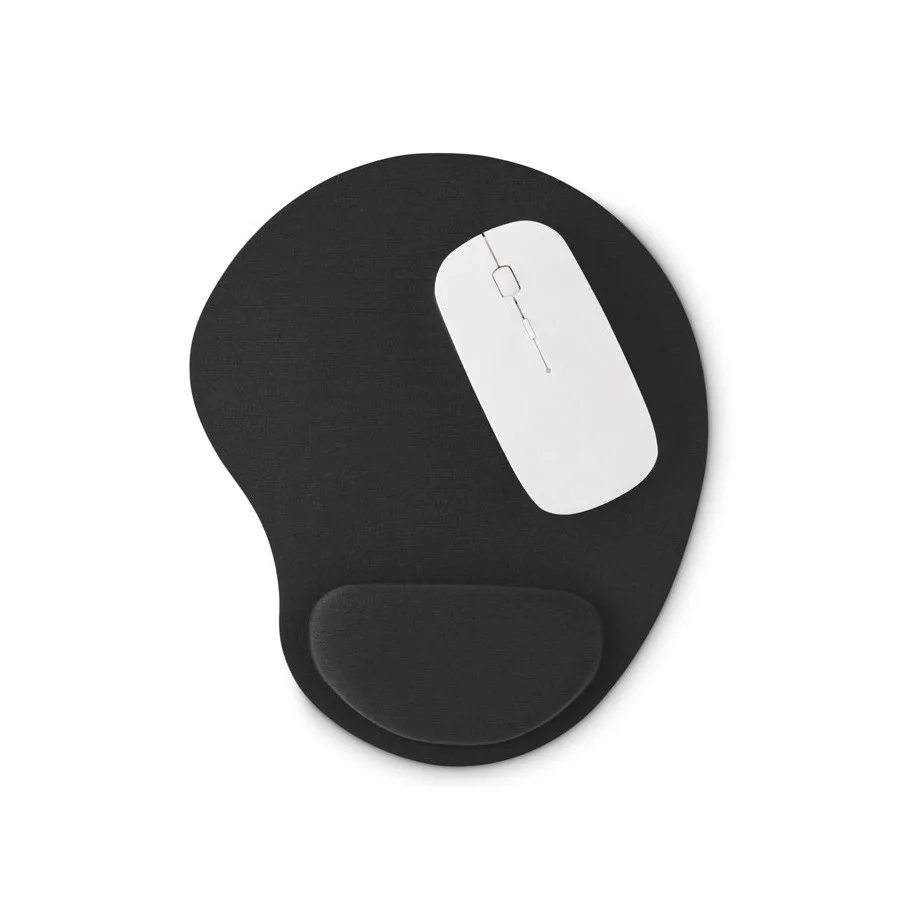 Le tapis de souris publicitaire Ergopad est un modèle ergonomique avec repose poignet pour moins de douleurs lors de l'utilisation intensive de la souris.