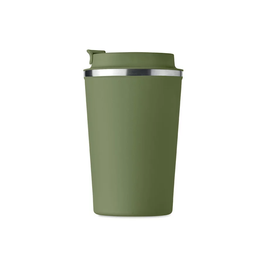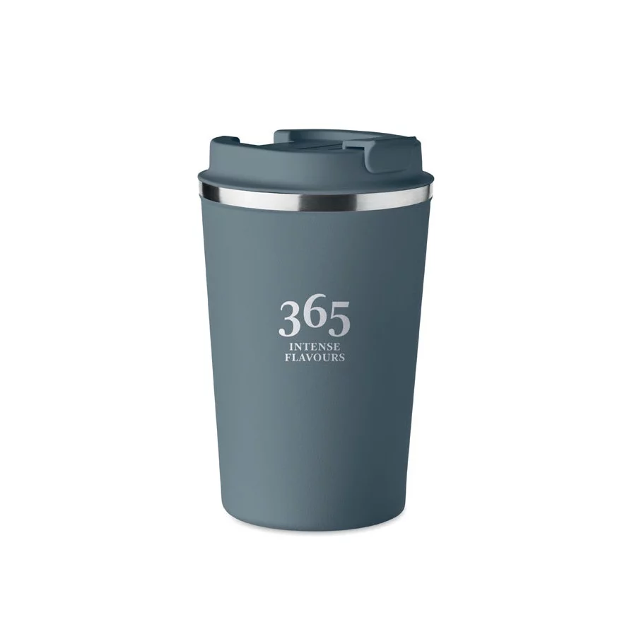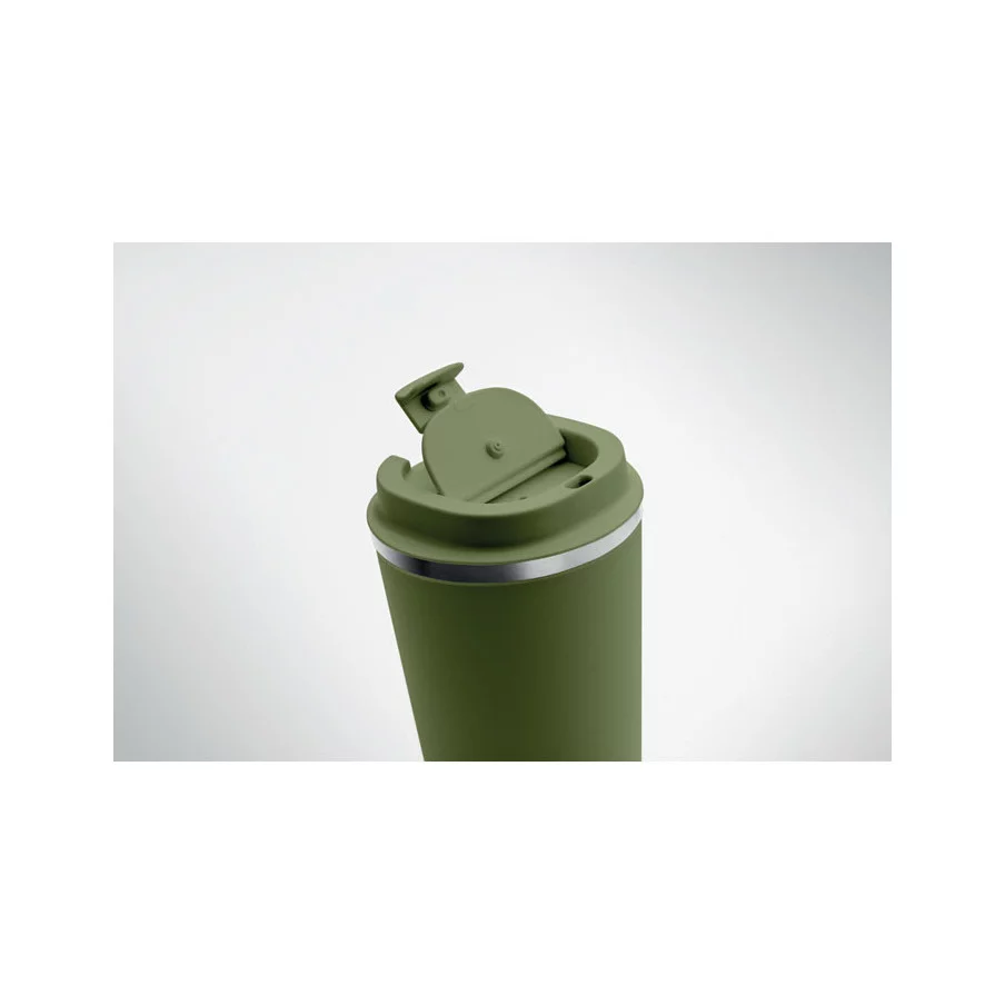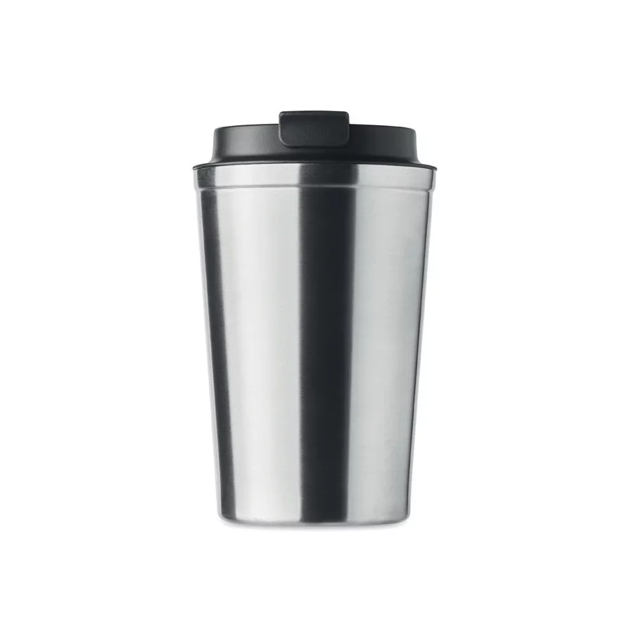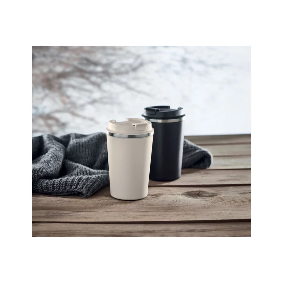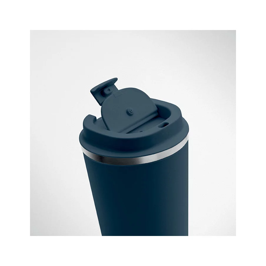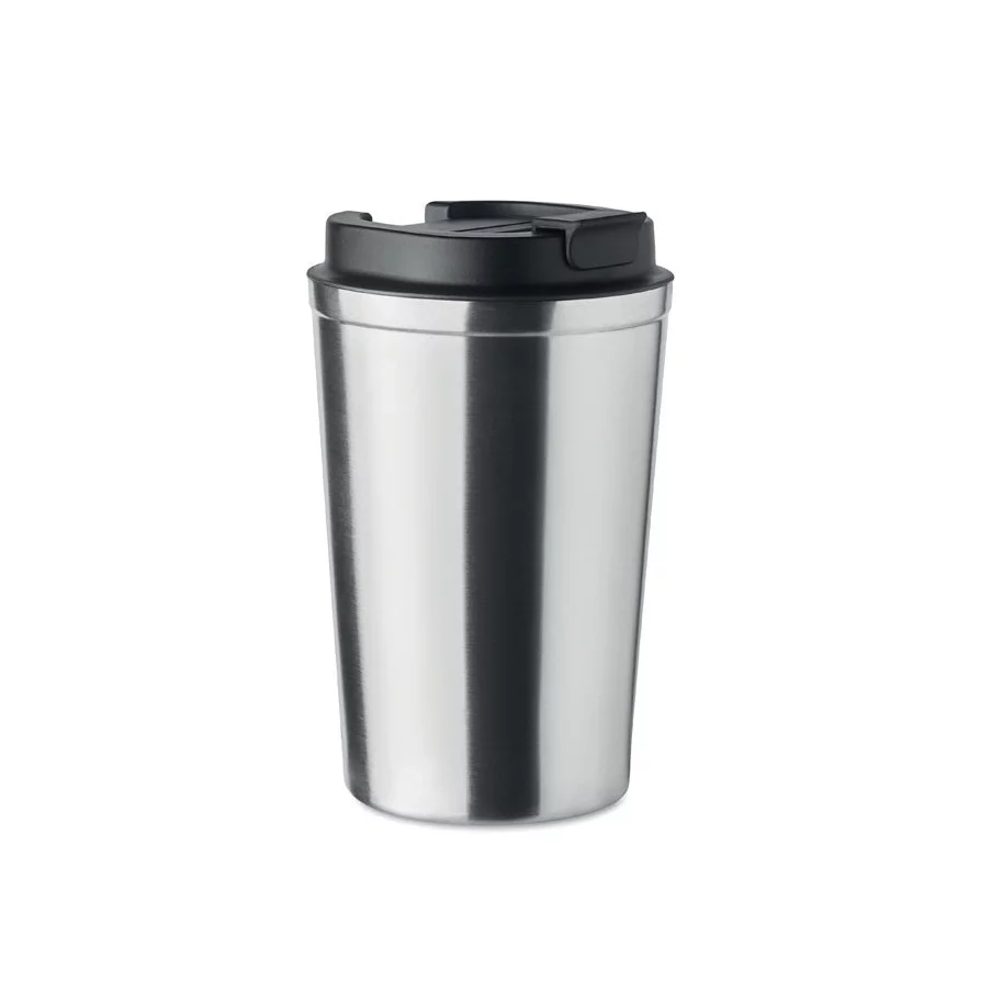 Fabriqué en acier inoxydable et doté d'une double paroi, ce gobelet de voyage publicitaire est parfait pour emporter votre café ou thé tout au long de la journée. La contenance est de 350 ml et son couvercle en PP possède un système antifuite.
