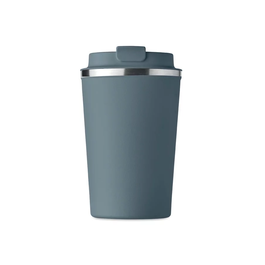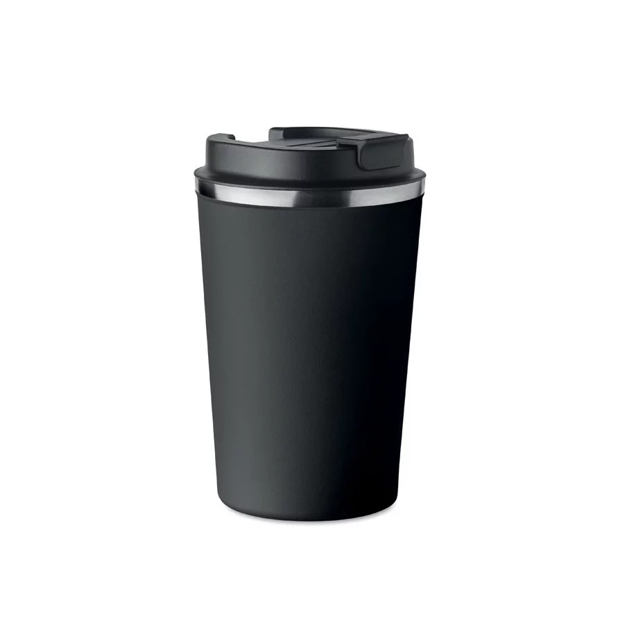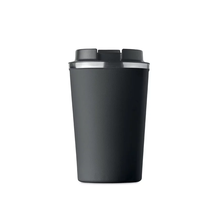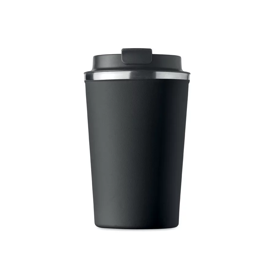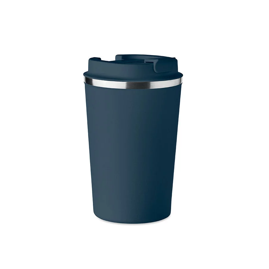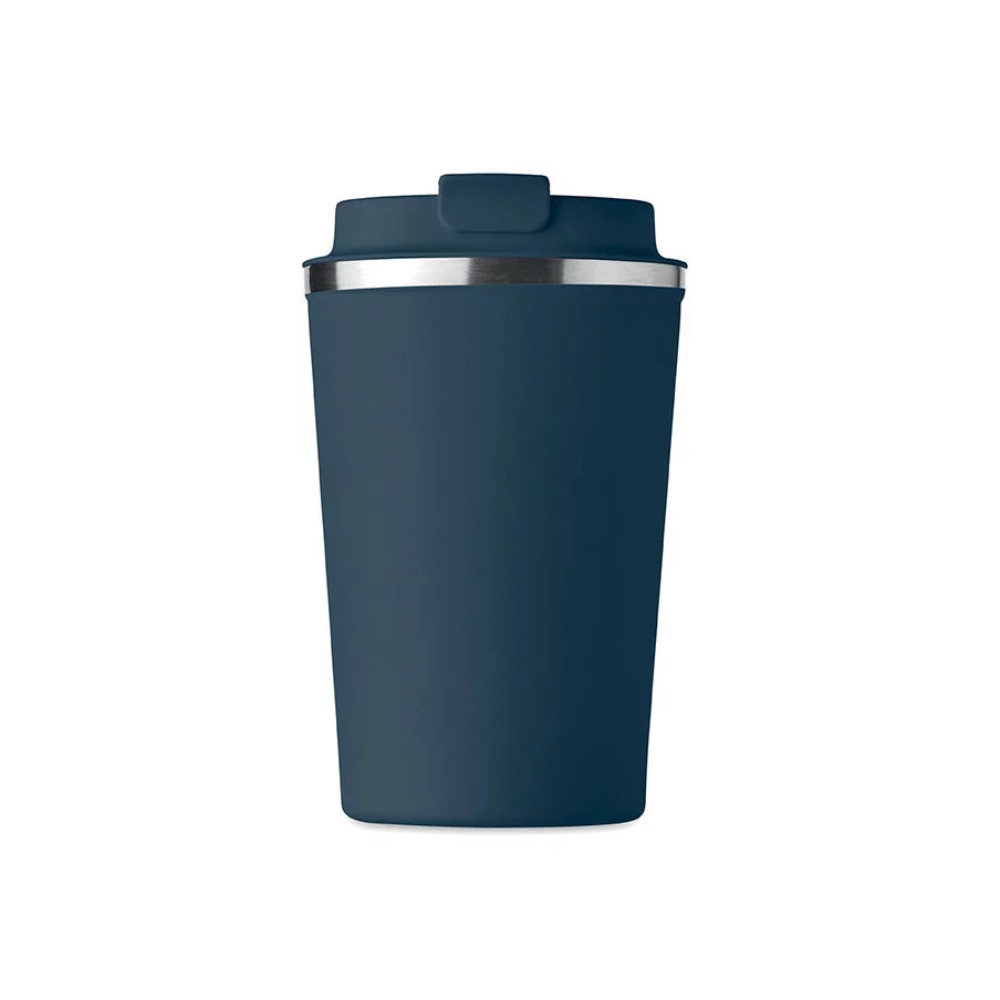 Fabriqué en acier inoxydable et doté d'une double paroi, ce gobelet de voyage publicitaire est parfait pour emporter votre café ou thé tout au long de la journée. La contenance est de 350 ml et son couvercle en PP possède un système antifuite.