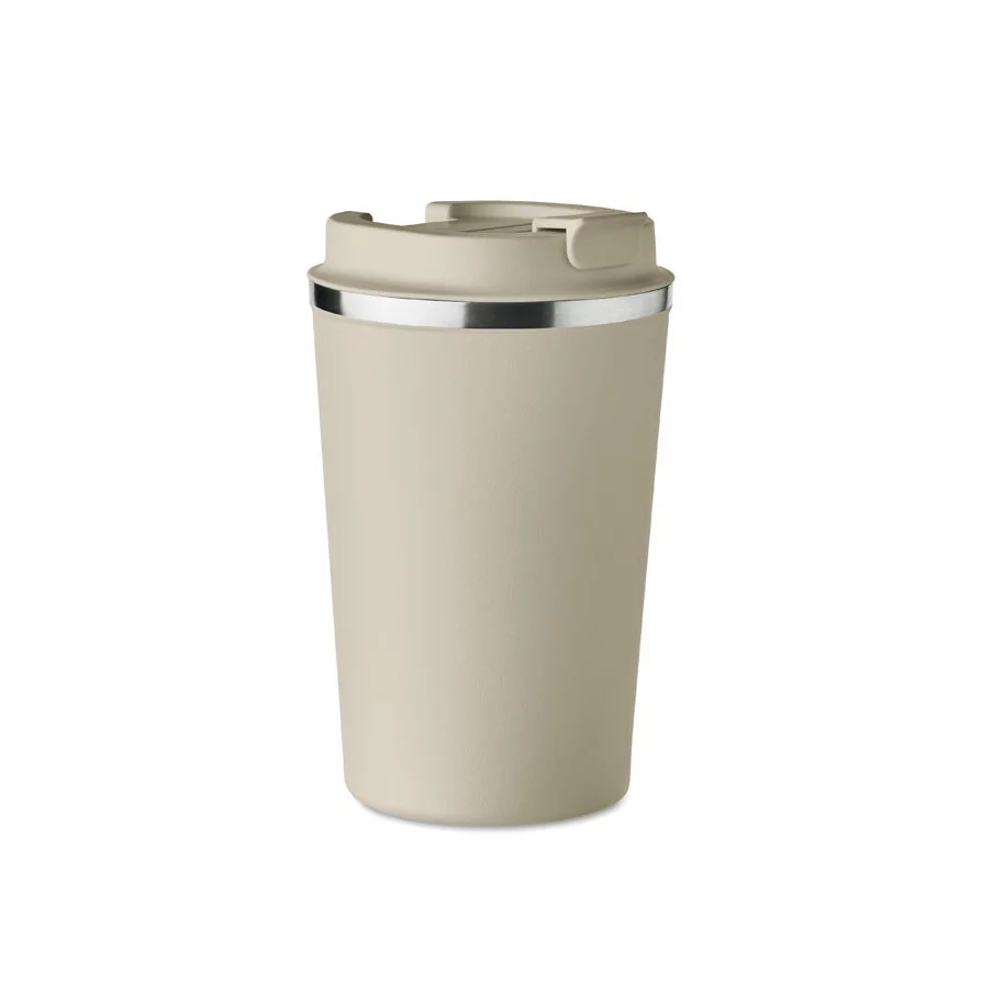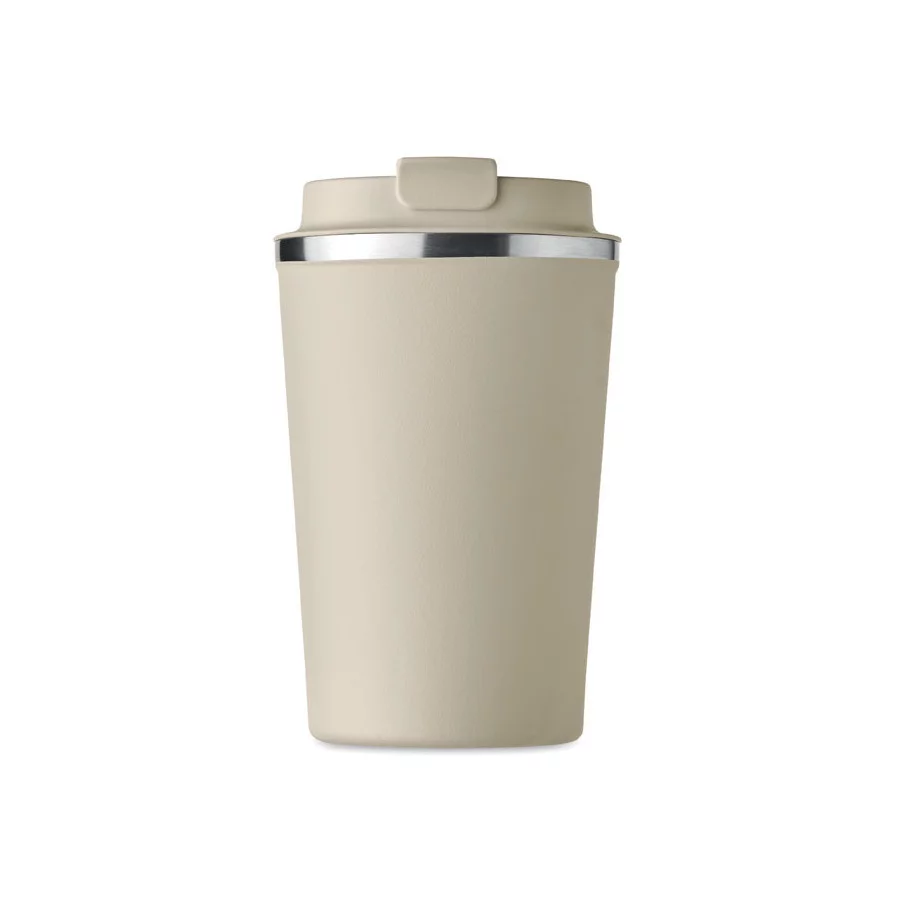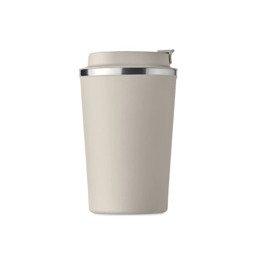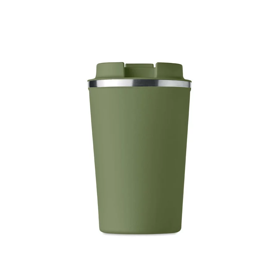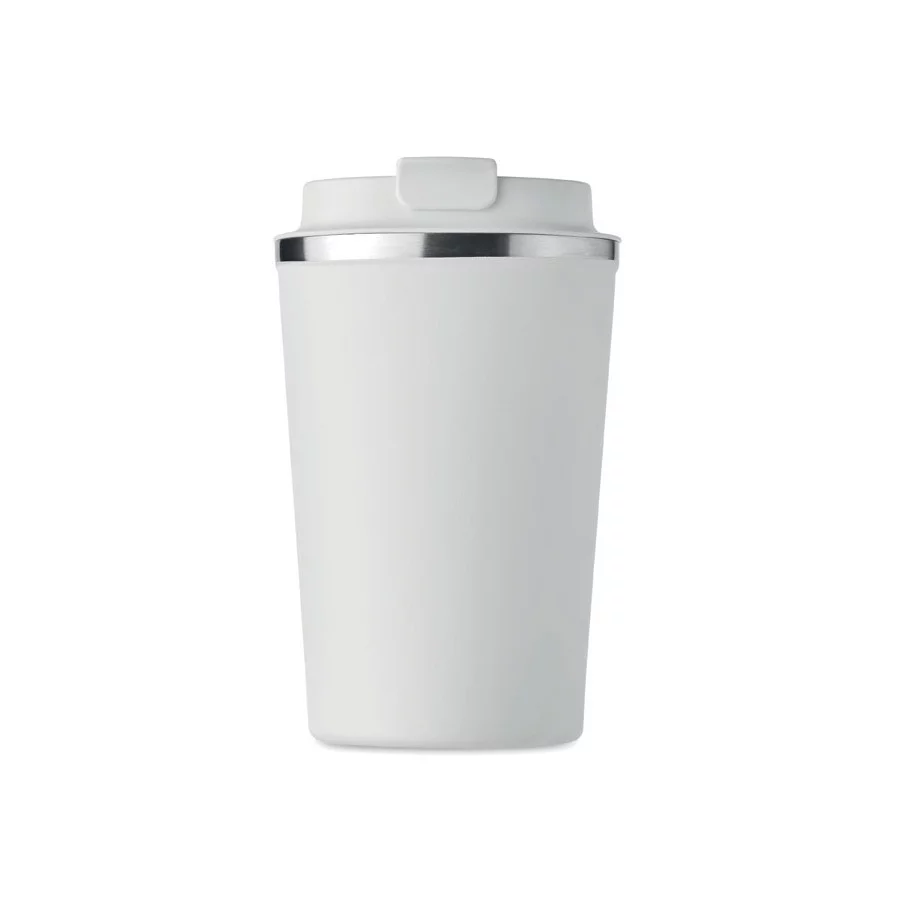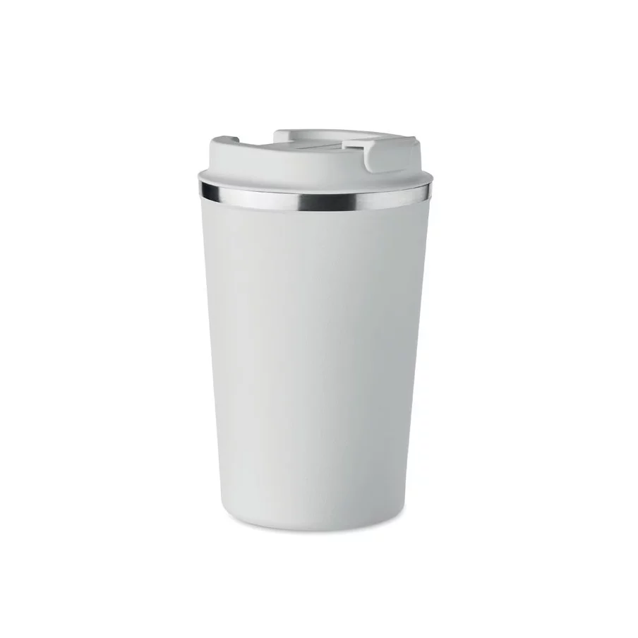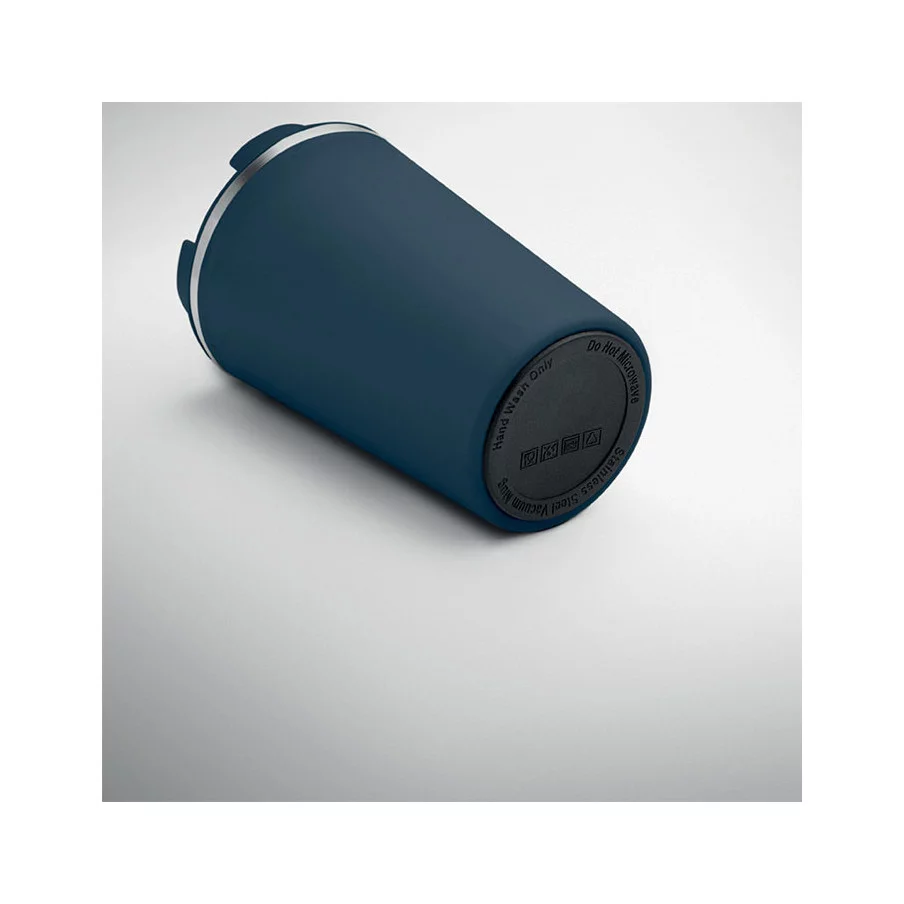 Fabriqué en acier inoxydable et doté d'une double paroi, ce gobelet de voyage publicitaire est parfait pour emporter votre café ou thé tout au long de la journée. La contenance est de 350 ml et son couvercle en PP possède un système antifuite.