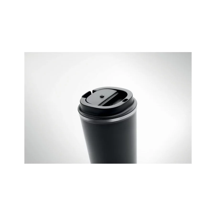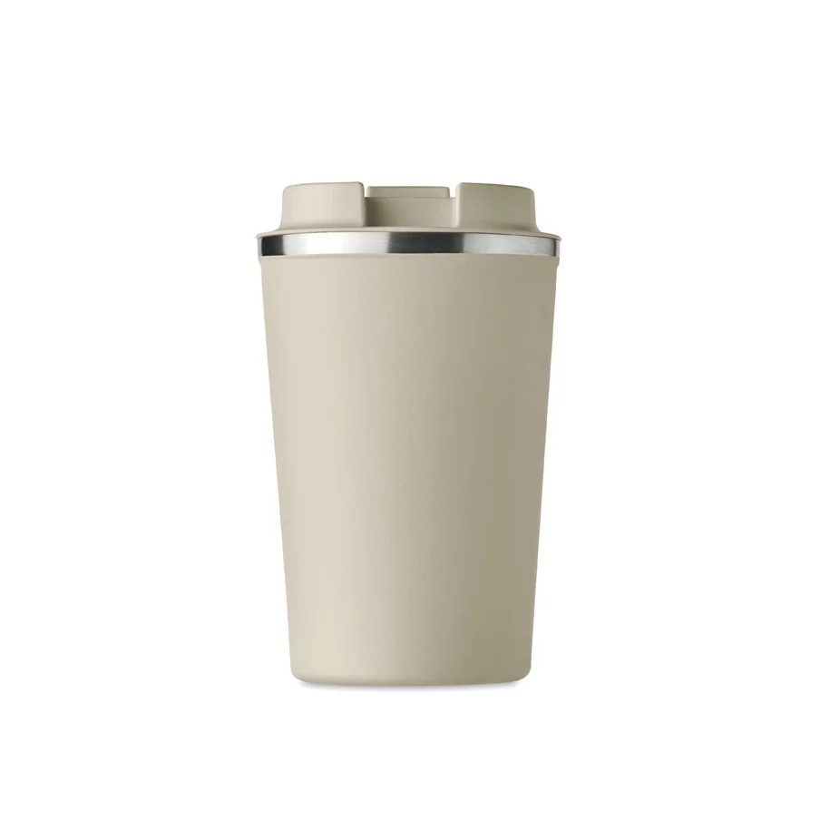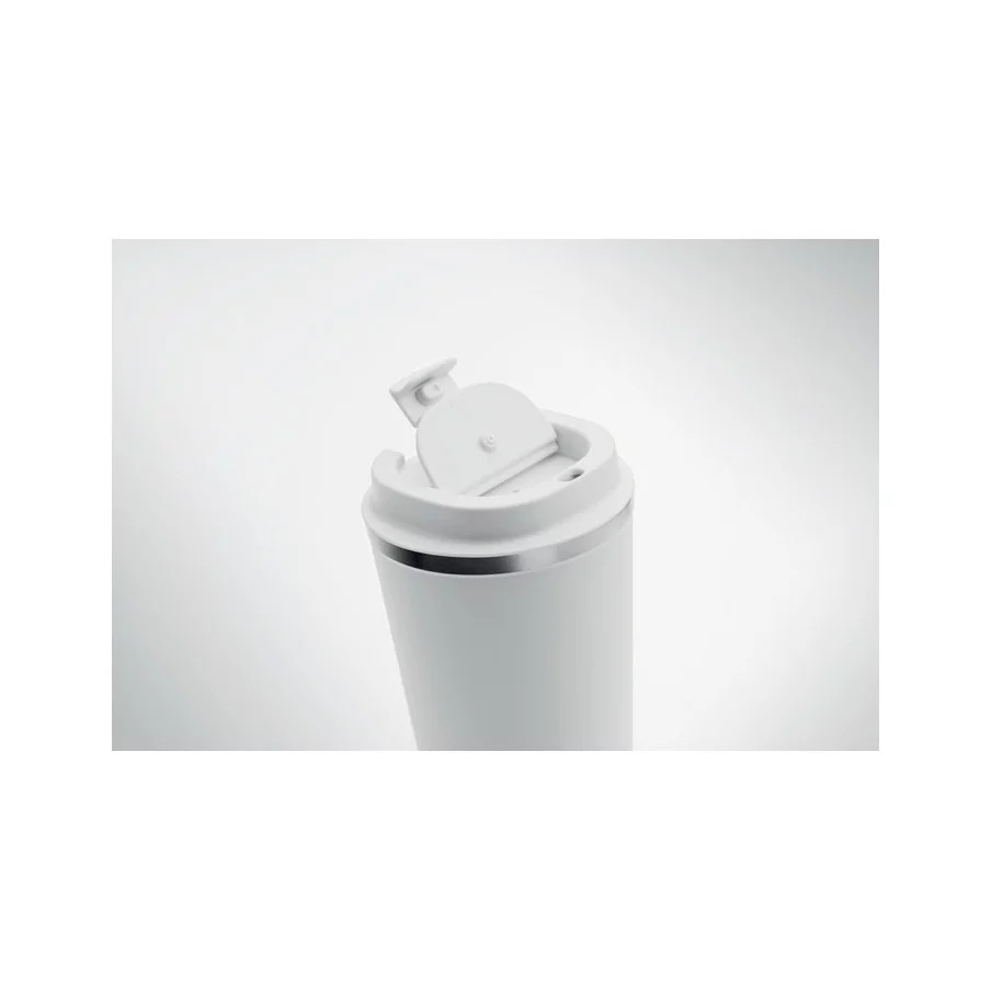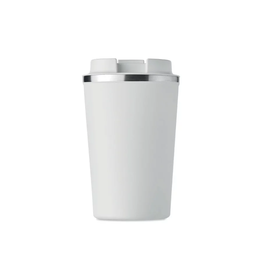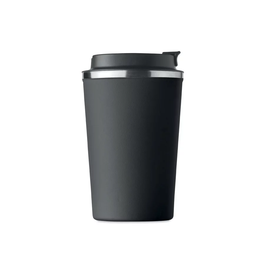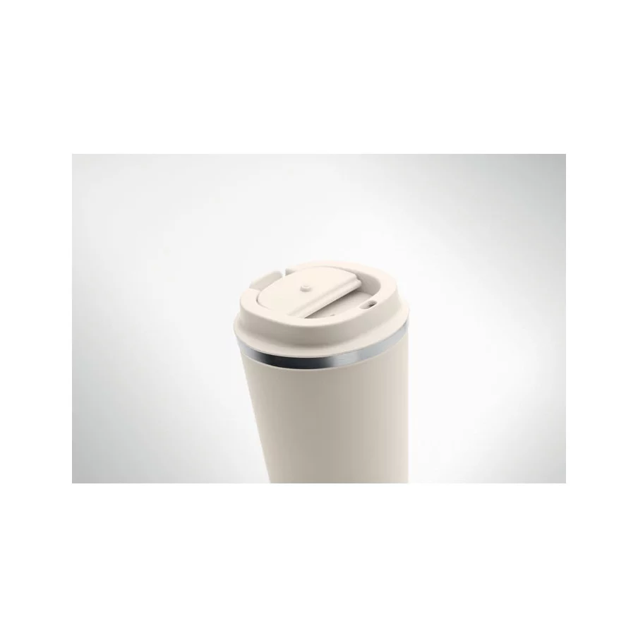 Fabriqué en acier inoxydable et doté d'une double paroi, ce gobelet de voyage publicitaire est parfait pour emporter votre café ou thé tout au long de la journée. La contenance est de 350 ml et son couvercle en PP possède un système antifuite.