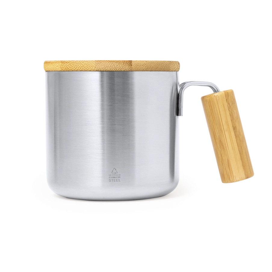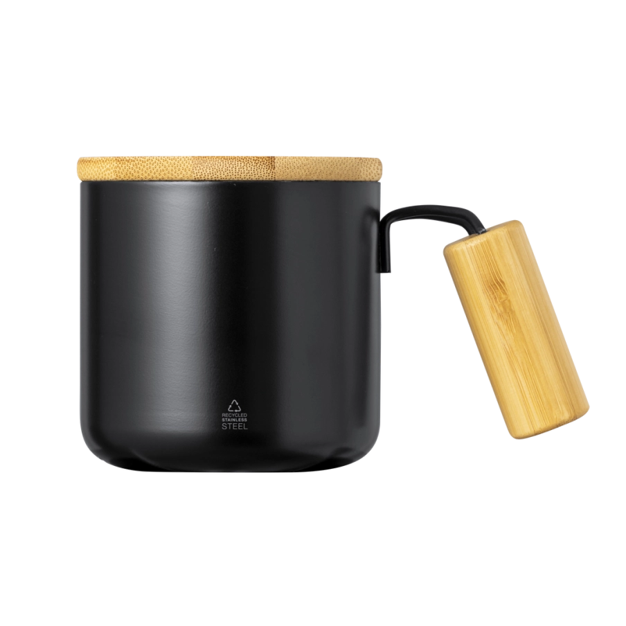 Offrez à votre public un produit qui combine élégance et respect de l'environnement grâce à notre mug isotherme de 330 ml en acier inoxydable recyclé. Cet article éco-responsable est une option parfaite pour maintenir les boissons à la température idéale, tout en minimisant l'empreinte environnementale. Fabriqué avec de l'acier inoxydable recyclé distinctif, notre mug isotherme incarne la durabilité et la conscience écologique. Il est équipé d'un couvercle en bambou et d'une poignée assortie qui ajoutent une touche d'élégance à l'ensemble. De plus, il est personnalisable avec votre logo, votre message ou votre design pour renforcer votre image de marque.