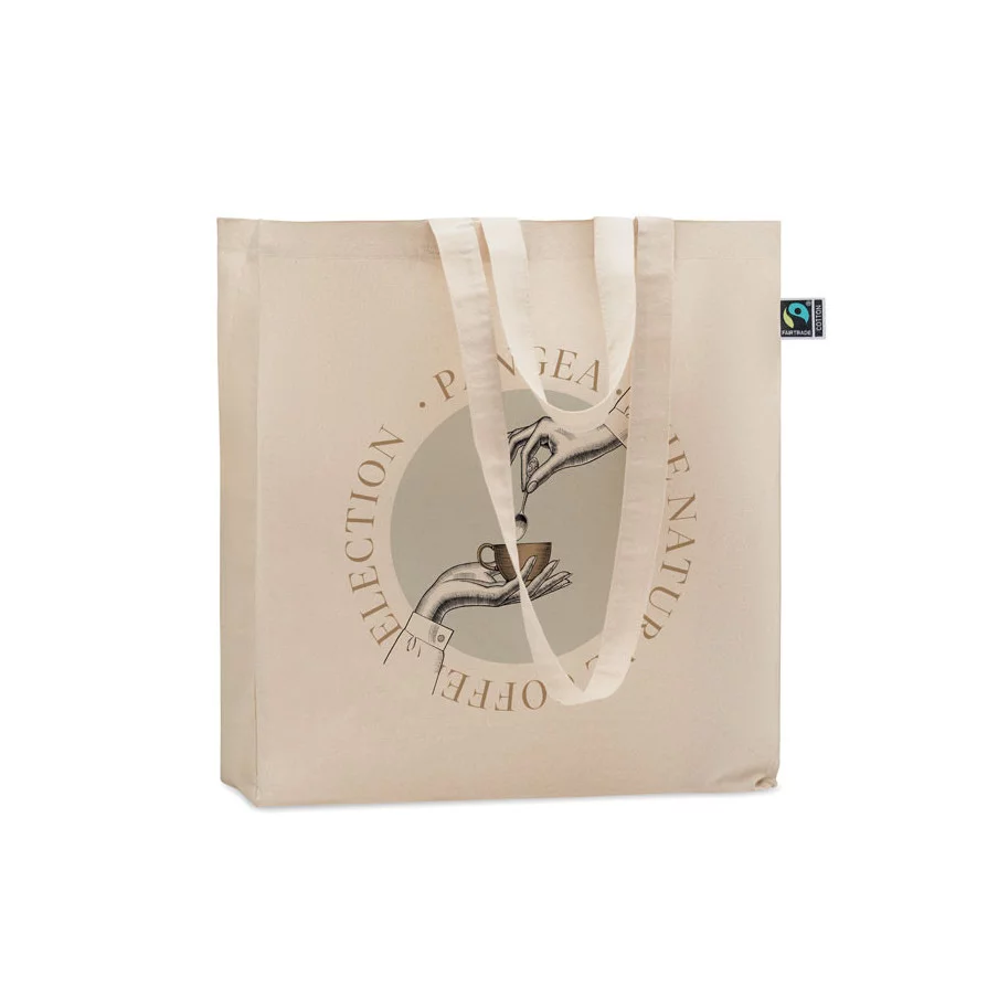 Le totebag personnalisé Osole ++ est en 100% coton avec la certification Fairtrade, un système commercial solidaire et alternatif au système conventionnel qui poursuit le développement des peuples et la lutte contre la pauvreté.