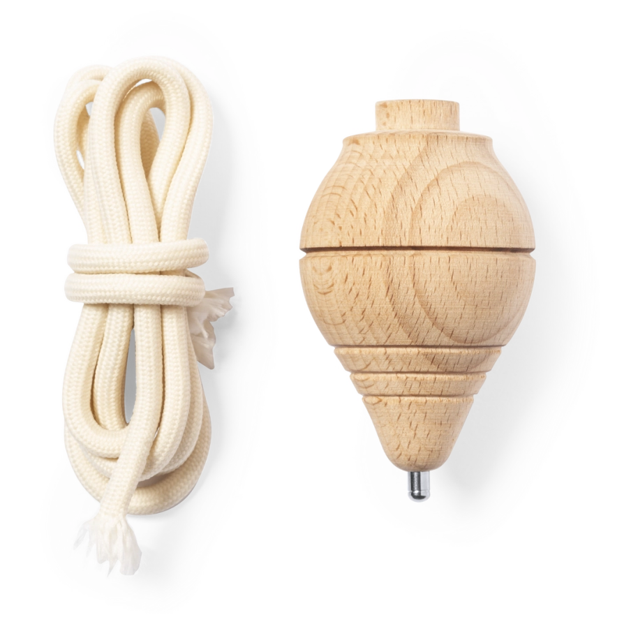 Un jeu publicitaire original et écoresponsable, craquez pour notre toupie en bois massif personnalisable avec sa corde en coton de 120 cm de long.