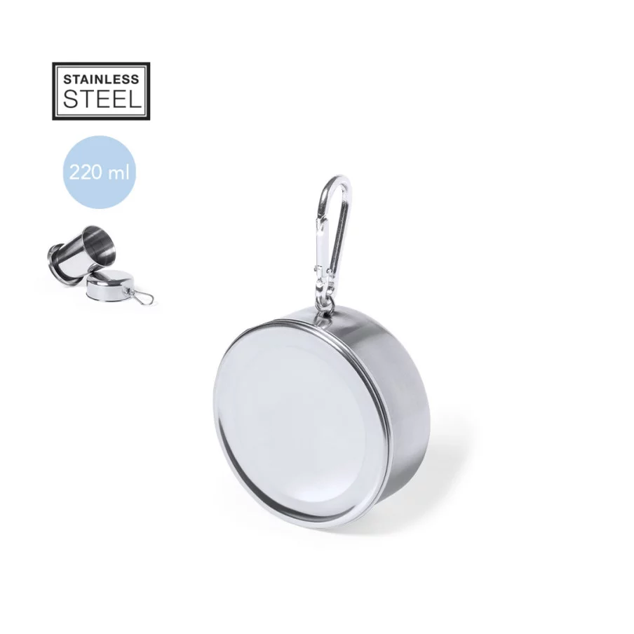 Offrez à vos clients et collaborateurs notre magnifique verre pliant en acier inoxydable. D'une capacité de 220 ml avec son mousqueton en métal, c'est le cadeau idéal.